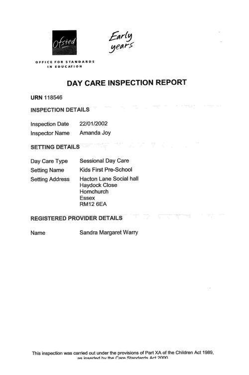 Day Care Inspection  Report - 2002